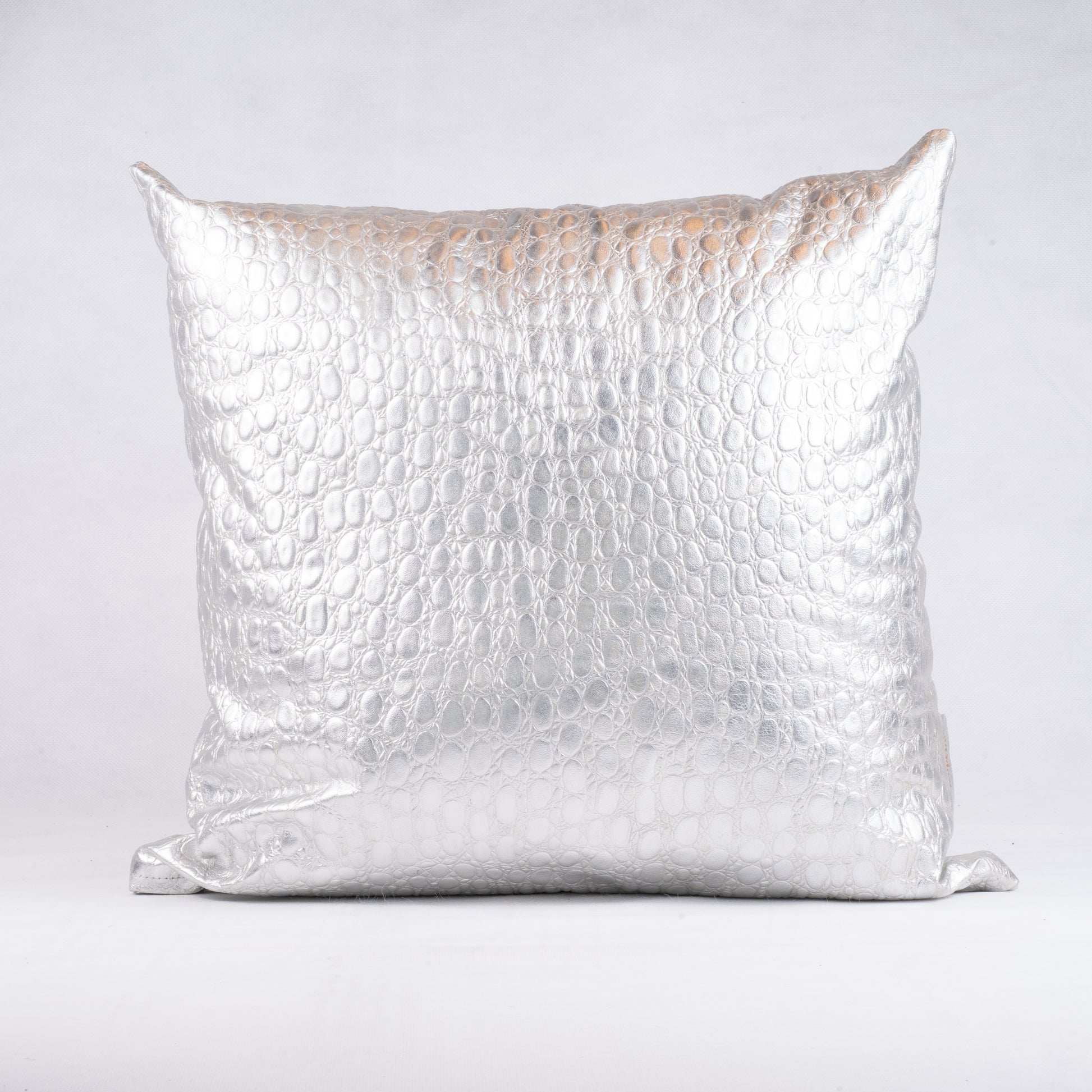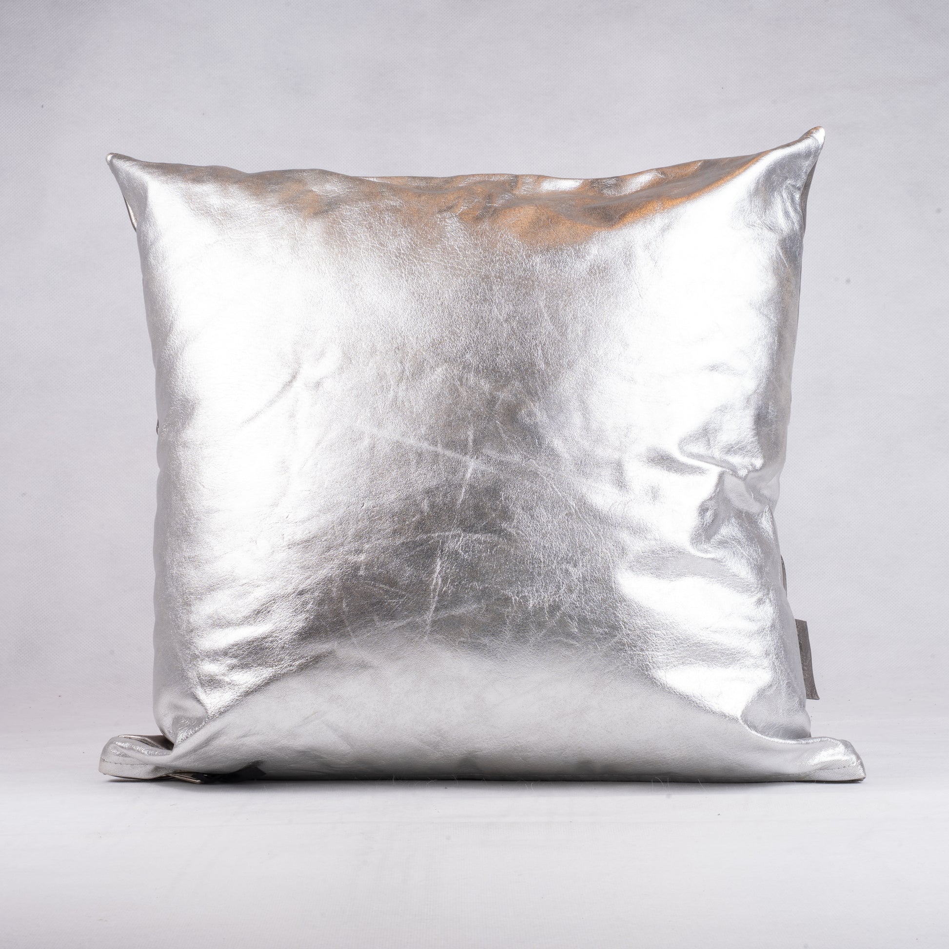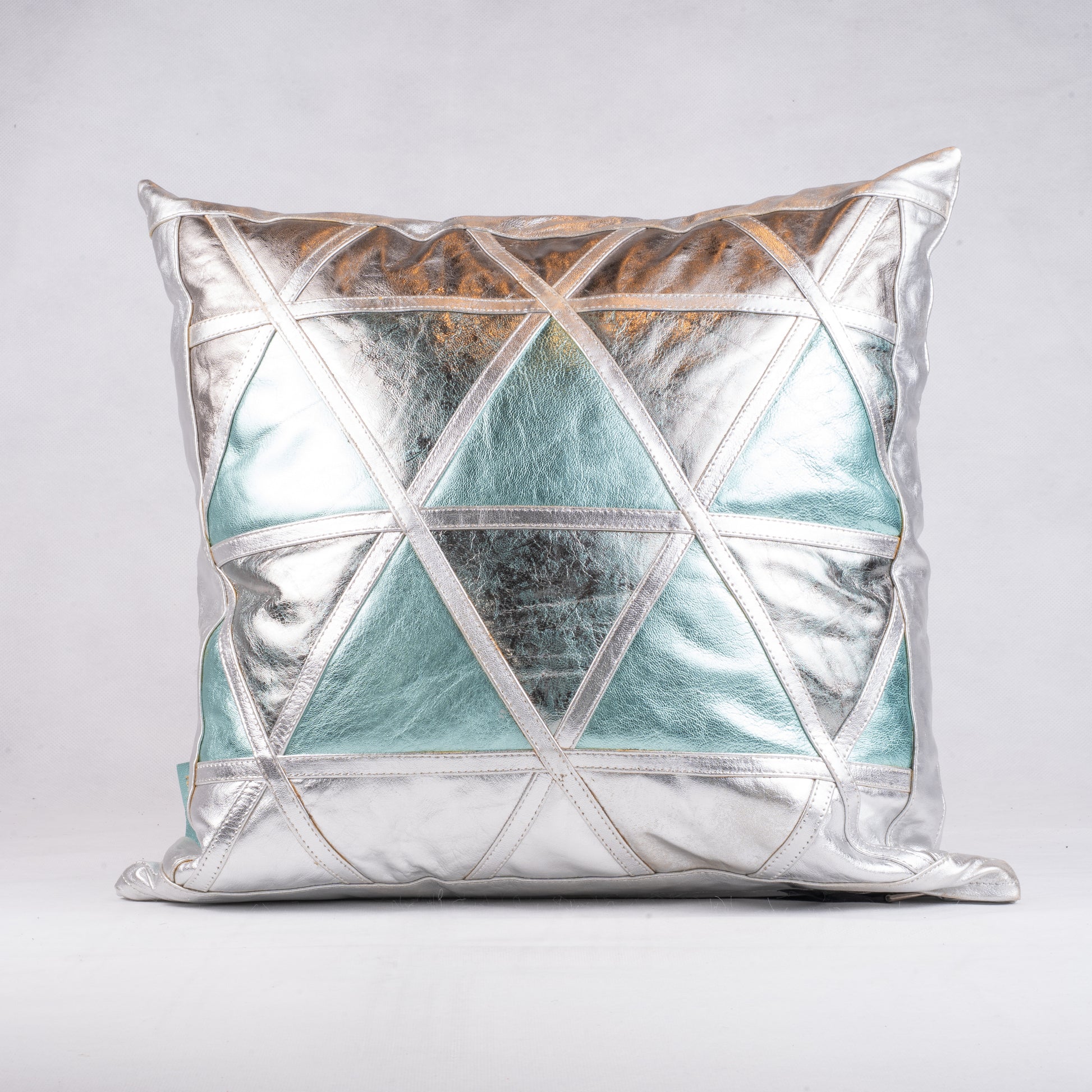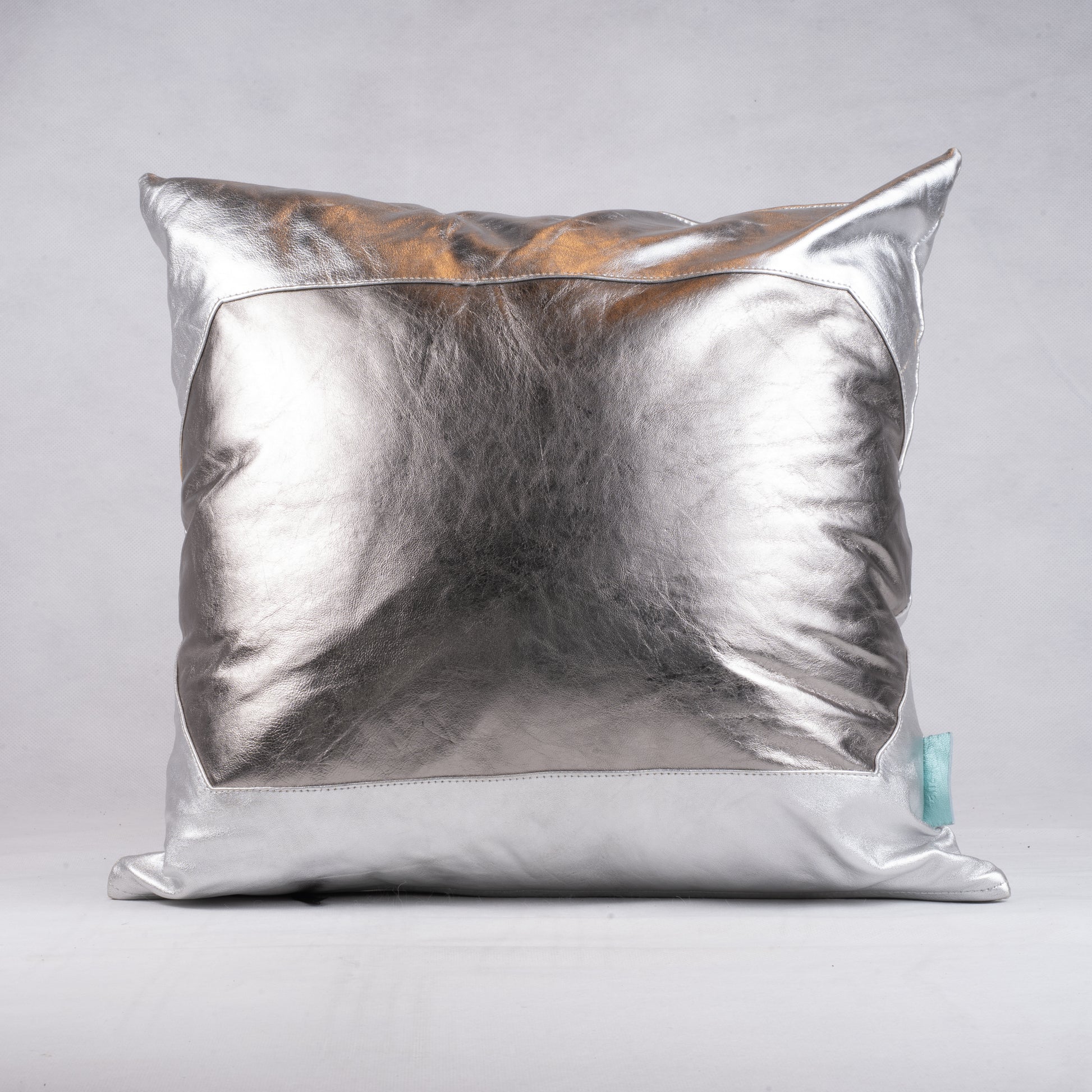 Add a touch of luxury to your space with this metallic leather cushion. Its geometric design and glossy finish bring elegance and modern style to any room.