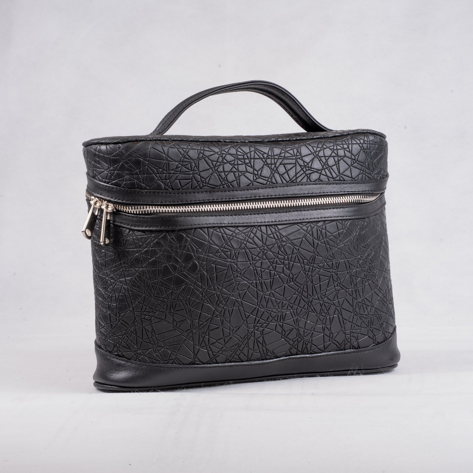 A modern and practical pouch featuring a sleek handle and geometric embossed texture. Designed for both functionality and style, it offers ample space and a secure zipper closure — making it a perfect companion for daily use, travel, or organizing essentials with ease.
