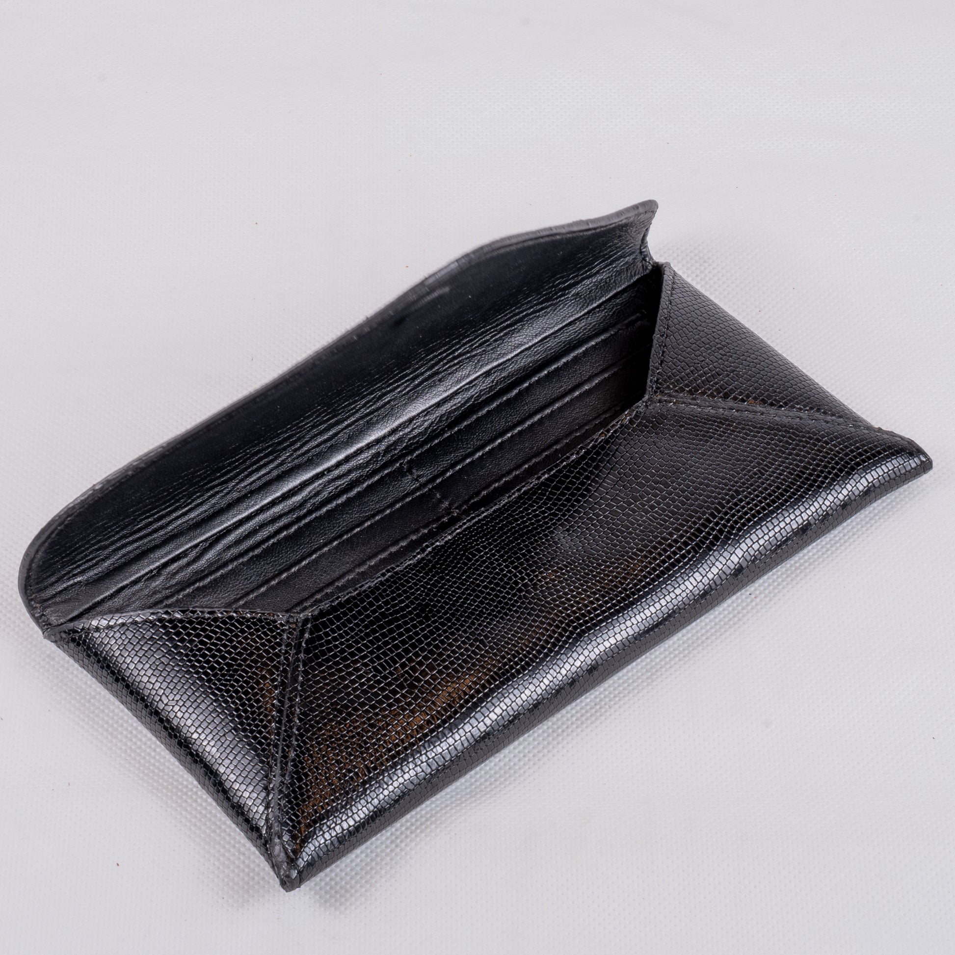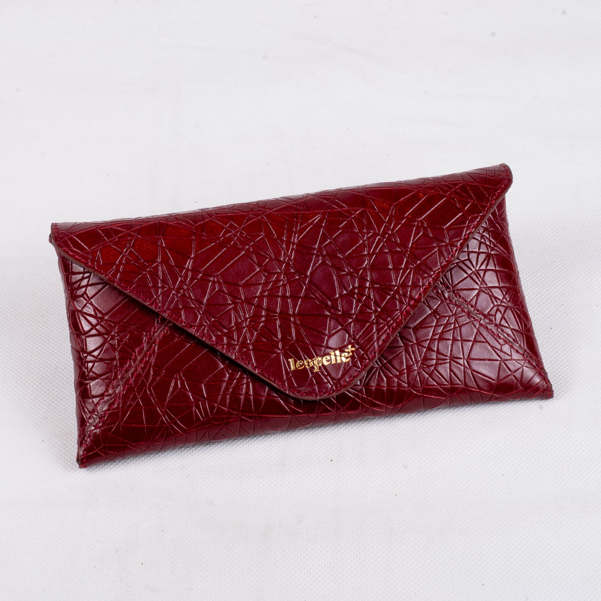 This genuine leather wallet features a glossy textured finish with a unique geometric pattern. Crafted for elegance and durability, it offers a sleek design that’s perfect for daily use or special occasions.